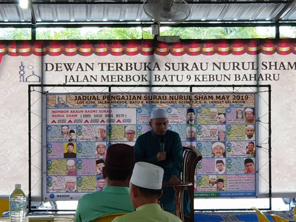 Jenjarom : Petang ini kami bersama Ust Hafizul Husni, dalam tazkirah santai sebelum berbuka di surau Nurul Sham, Jalan Kebun Baru, Jenjarom.