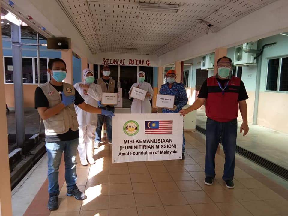Selain itu, Yayasan Amal juga memberi sumbangan 300 Tudung Uniform, 928 ‘Face Sheild’, 10 set kipas dan 2 buah Kanopi kepada pihak Hospital dan Klinik Kesihatan yang memerlukan.